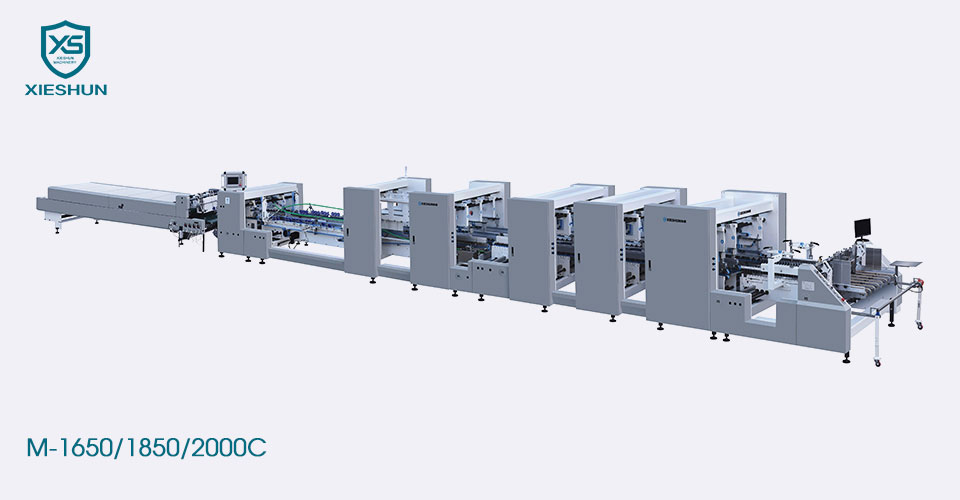 XIESHUN M-1650/1850/2000C Automático Glober de pasta de canto de 4 e 6 de serviço de serviço pesado Aplicação em caixas médias e grandes na indústria de embalagens pesadas. A placa interior é movida usando guias lineares para garantir precisão e facilidade de operação, portadoras superiores auto-dirigidas, obtenha as caixas de micro-fluto dobrável e corrugadas de dobragem. Unidade dobrável por motor servo independente para ajuste de velocidade preciso. A sucção secundária pode alinhar a cauda de peixe das caixas devido a diferentes razões, como o corte e o vincos inadequados. Máquina de glóer de pastas MFG-1450 com versatilidade, mudança rápida de acessórios, configuração fácil, alta velocidade e alta produção.